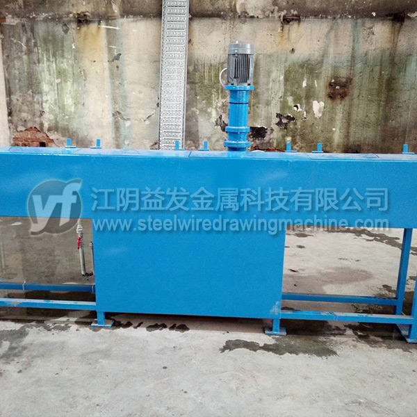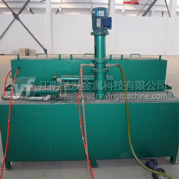 箱體采用Q235板焊接而成,內(nèi)膽采用314不銹鋼板焊接防止硼砂水受銹蝕的污染,保持硼砂的純潔度,保持鋼絲涂硼效果。兩層之間有40mm的保溫棉。不銹鋼電加熱管12KW,有熱電偶控制溫度,1.5KW的提升泵用于硼砂水上下循環(huán),相當(dāng)于自動(dòng)攪拌,箱體上層液體采用了多次溢流方式,出口處高壓氣吹用于調(diào)節(jié)鋼絲表面的硼砂量。長(zhǎng)度2500MM,寬度500mm,高度1100mm,重量800Kg。