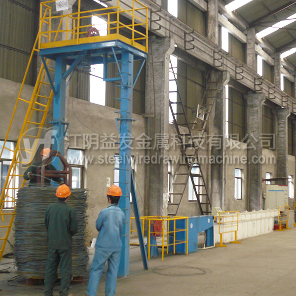放線架是將原料無動力(被動放出),粗線(?8mm)以上通常采用“一”字式放線架,優點在于放線不停車、操作高度較低比較安全。中線(≤6.5mm)推薦采用液壓式高架放線,優點在于節約場地、放線不停車、高度達到9米以上時亂絲非常少;但是對于這個直徑的高碳鋼絲而言,鴨嘴式放線架雖然使用場地比較大,效果也可以的。細絲的放線一般用上抽式放線架,尤其對于退火后的細絲,就必須使用一些特殊的裝置才能確保亂絲少。工字輪放線是*好的方式,但是因為用途的限制,這種方式不能全部使用。